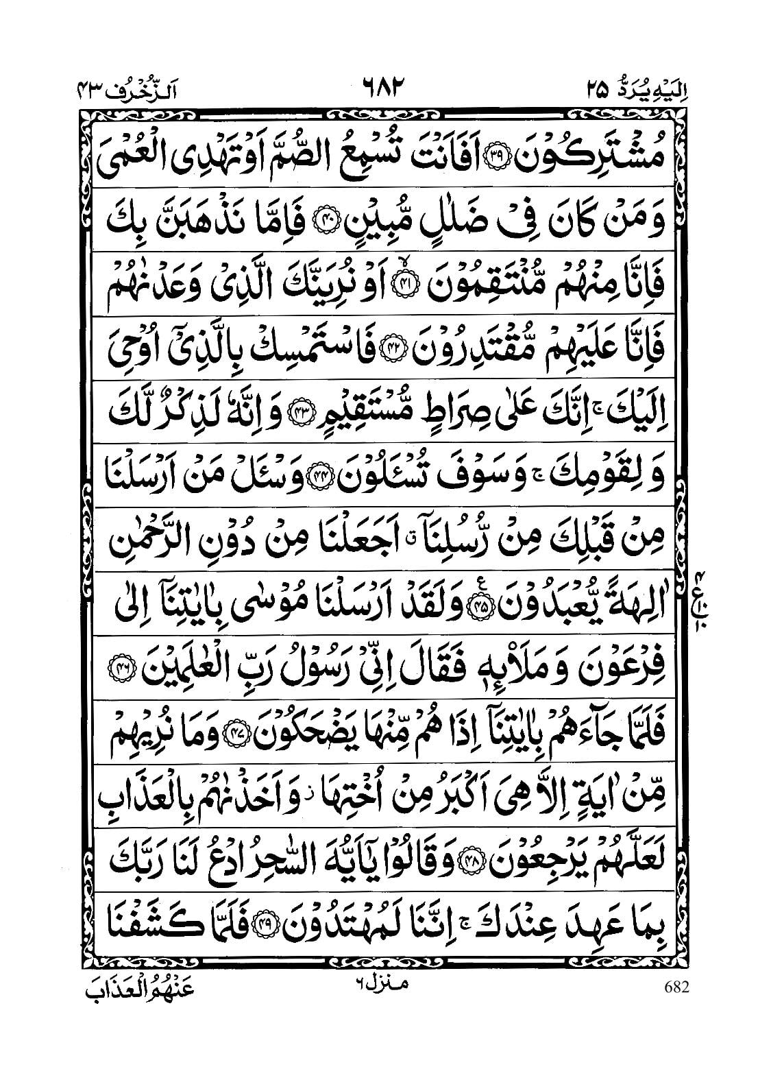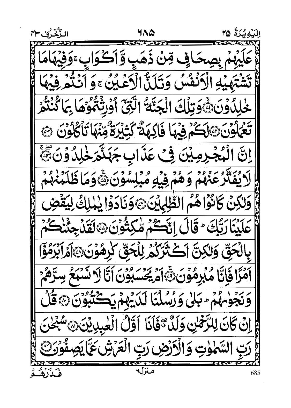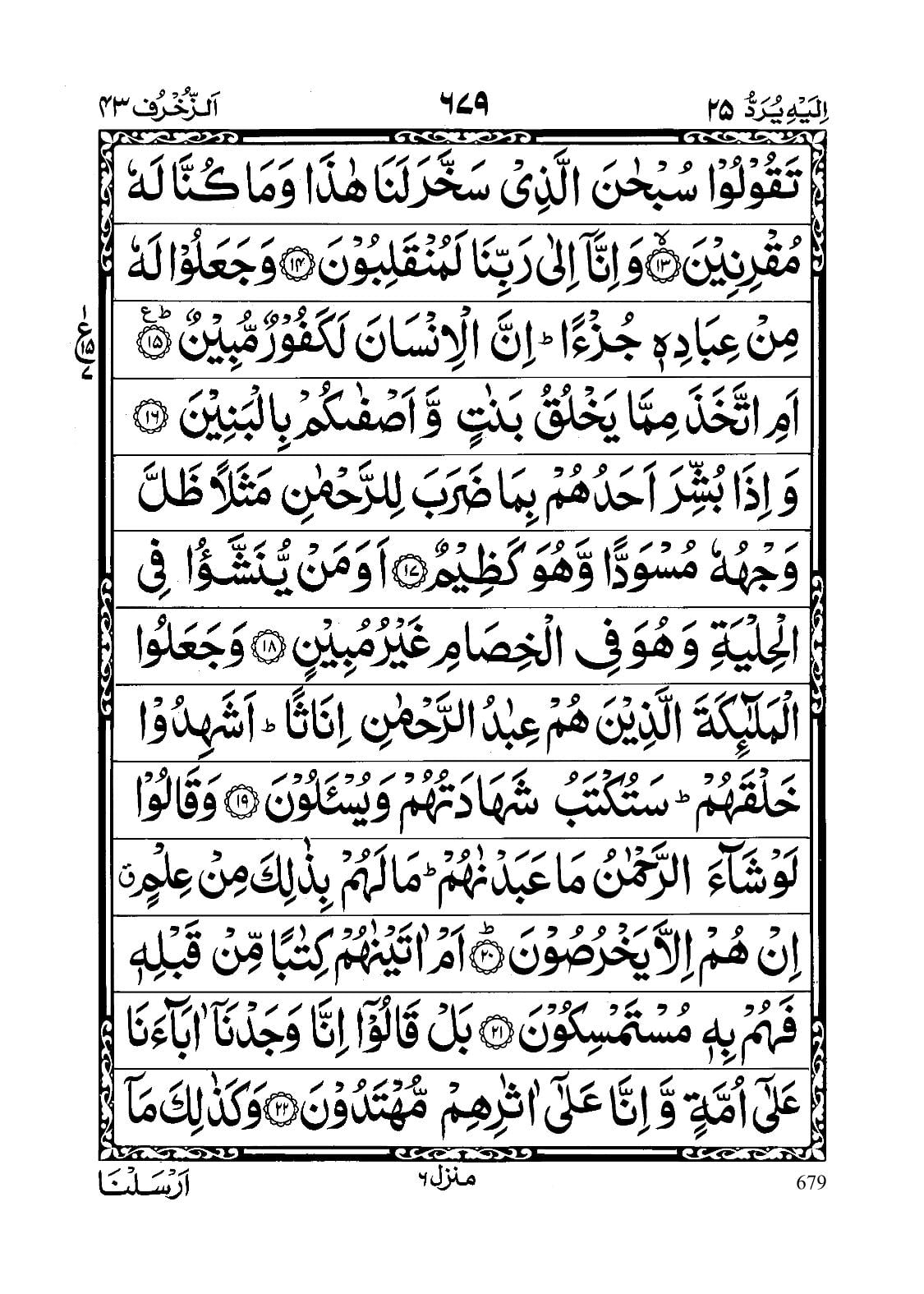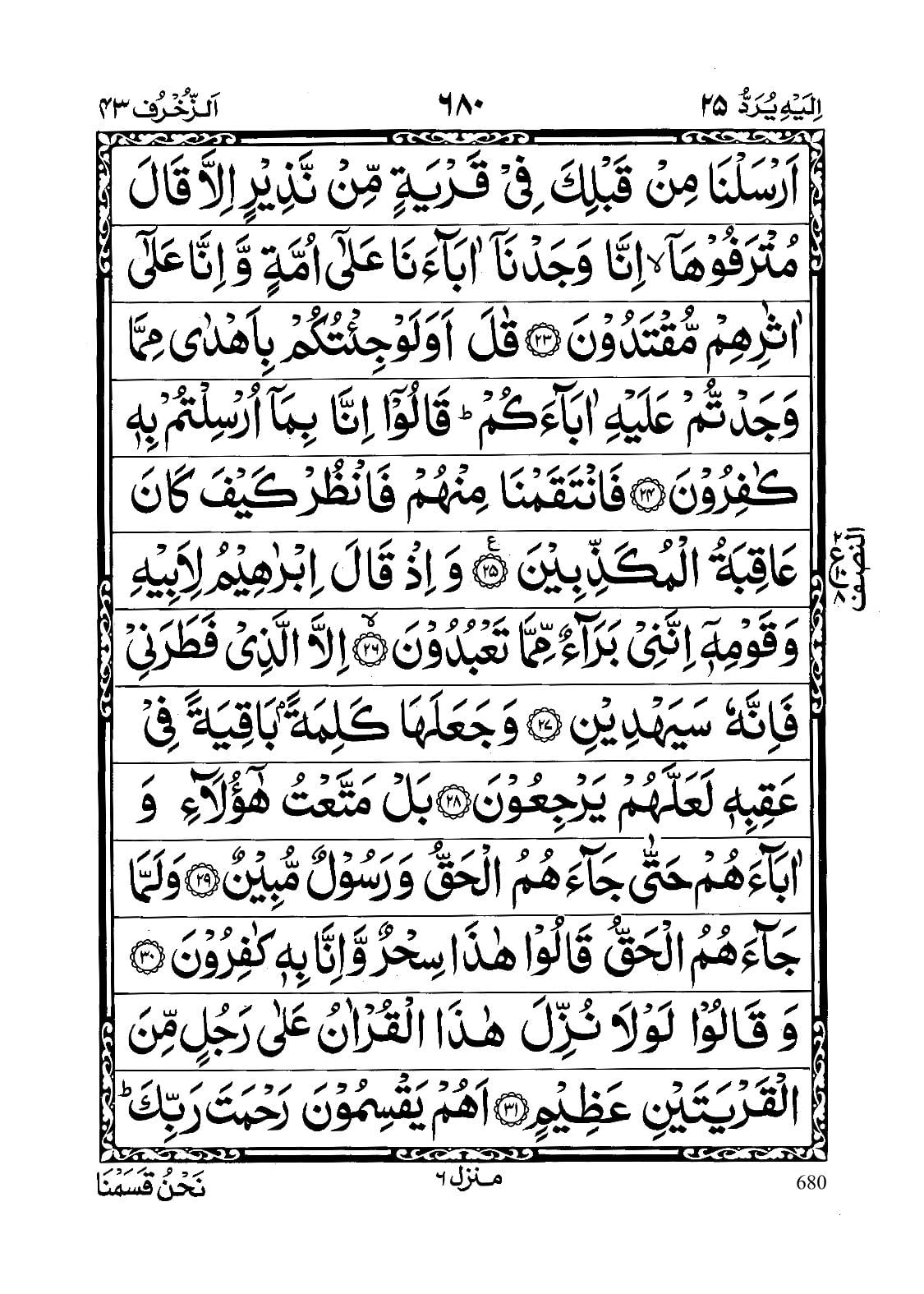 - Wa kazaalika maaa arsalnaa min qablika fee qaryatim min nazeerin illaa qaala mutrafoohaaa innaa wajadnaaa aabaaa’anaa ‘alaaa ummatinw wa innaa ‘alaaa aasaarihim muqtadoon