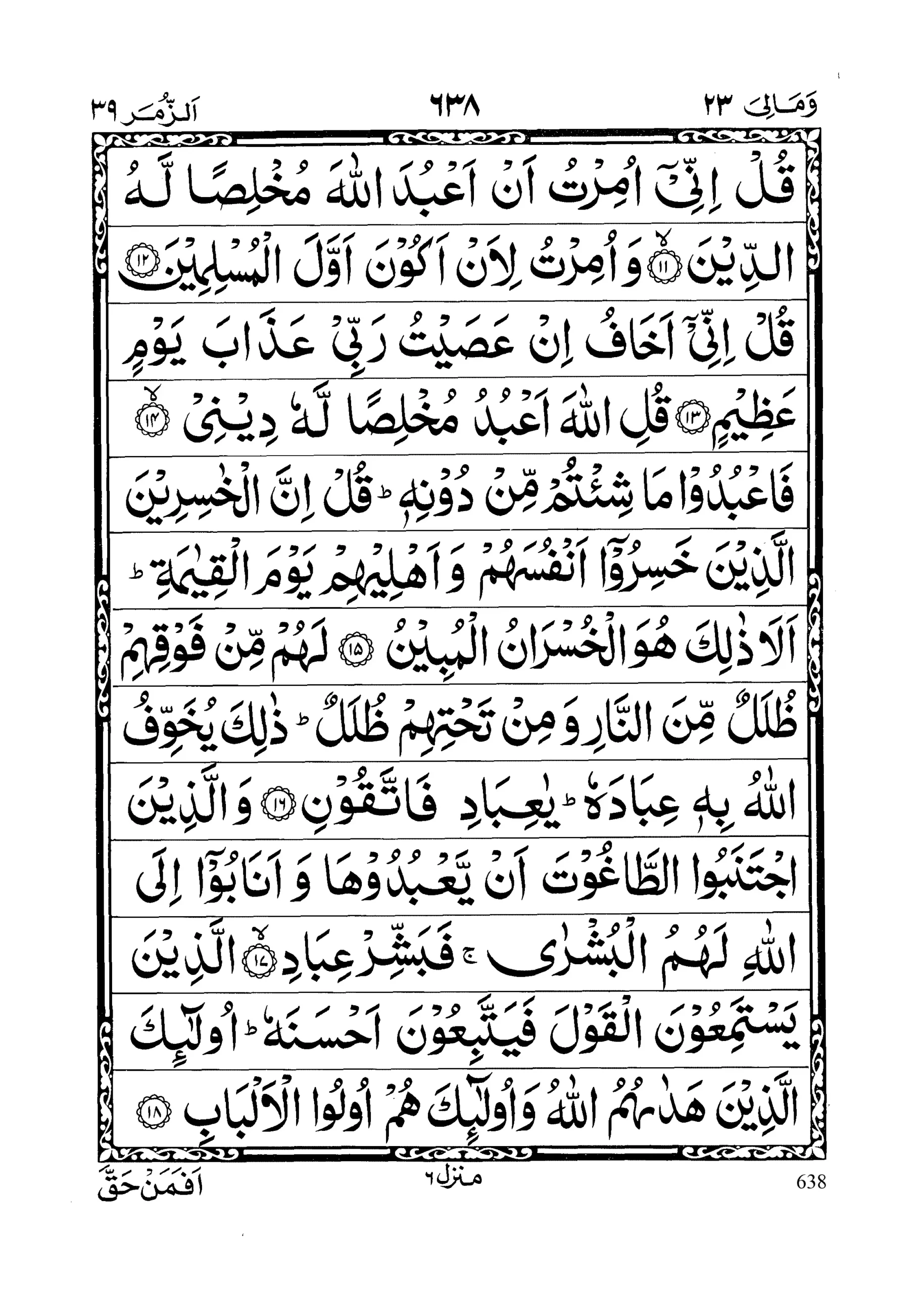 11. قُلْ إِنِّي أُمِرْتُ أَنْ أَعْبُدَ اللَّهَ مُخْلِصًا لَهُ الدِّينَ
