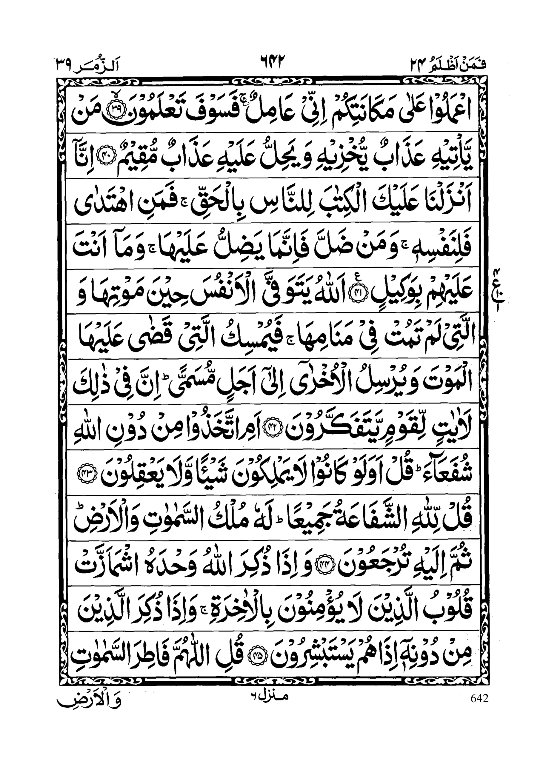 41. إِنَّا أَنْزَلْنَا عَلَيْكَ الْكِتَابَ لِلنَّاسِ بِالْحَقِّ ۖ فَمَنِ اهْتَدَىٰ فَلِنَفْسِهِ ۖ وَمَنْ ضَلَّ فَإِنَّمَا يَضِلُّ عَلَيْهَا ۖ وَمَا أَنْتَ عَلَيْهِمْ بِوَكِيلٍ